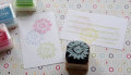 使ったインクの色は左からartnic134ペダルピンク、11カナリー、136ベイビーブルー、右のカードは上からartnic101カメリア、19シアン、106スプリンググリーンです。