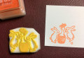 うさぎが餅つきぺったん・ぺったん! 昔ながらの杵と臼で二匹で上手に餅つきする姿がかわいい消しゴムはんこです。 お正月向けに、お月見の時に使うと季節感があっていいですよ。