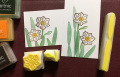 はんこは3種類。水仙の花、蕾、葉っぱです。押し方見本と、簡単な押し方アドバイスをつけてお送りします。